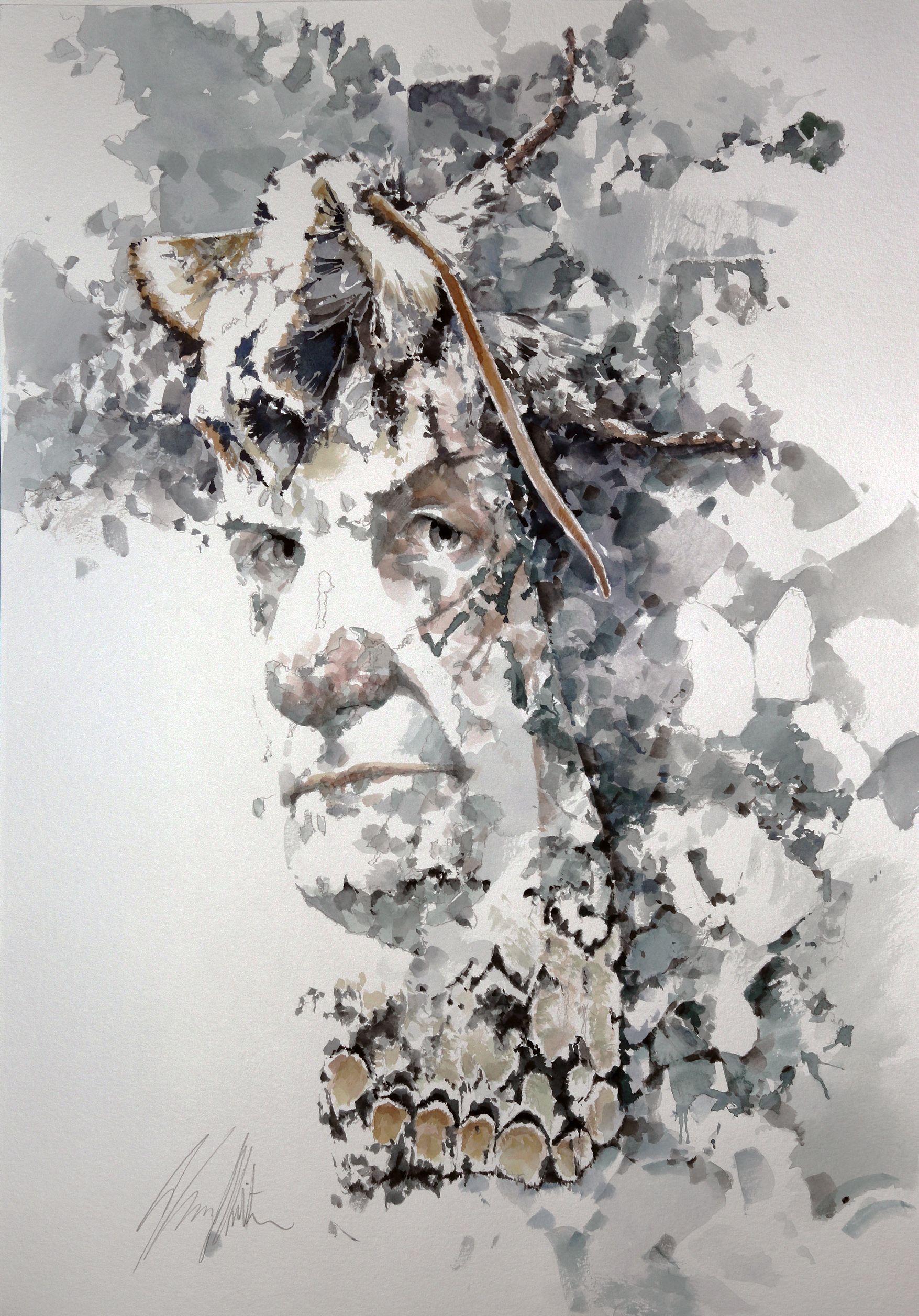 Based in Newcastle Emlyn, Glenn is best known as a realistic figure painter. Experience as a scenic artist, at the BBC and in the film industry, provided opportunities for him to practice trompe-l’oeil techniques on an industrial scale. Such visual subterfuge has guided his subsequent painting activity in a wide range of media