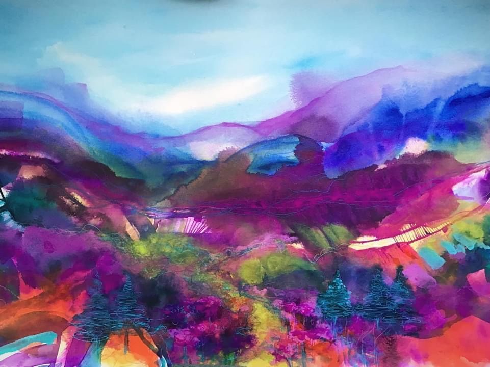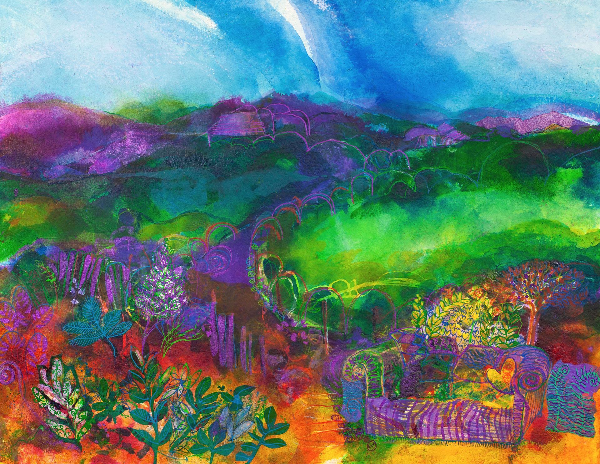 My artwork begins with drawing, thoughts and feelings become tools to hone the mark-making. The colour and decorative content is intuitive and I love the process of manipulating the colours upon the surface, immersed in the vehicle of colour and personal associations, I add to this, new fragments blended from my imagination and memory. The magic of the unseen, embracing the fragility and strength of this life, for that reason my art has always been a personal journey. These impressions and visual expressive poems are explored and anchored in a highly personal narrative about a sense of place, my memory and emotion for each intuitively composed frame.
