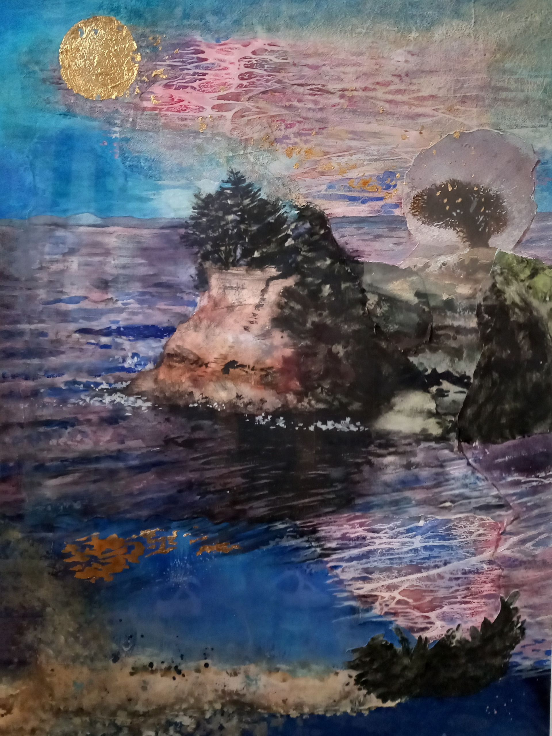 My paintings explore the emotional power of colour and are mostly concerned with the mystical quality of the natural landscape and the Tree of Life.