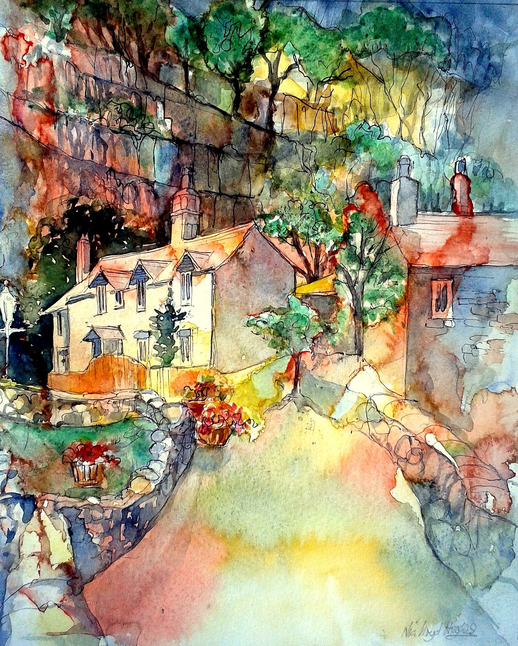 I gained my qualifications in Textile Design at Manchester Art School in the early seventies and worked as a designer for a company is Suffolk. I was born and brought up in North Wales and on moving to Snowdonia in the 80’s I was captivated by the dramatic scenery surrounding me. I began painting landscapes, working and exhibiting with a group of artists in Caernarfon. Watercolours seemed the perfect medium to capture the ever changing light, weather and seasons.