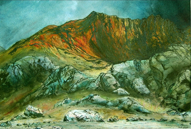 I have spent many years walking the local coast, climbing the mountains with sketchbook in hand. I search for an abstraction that carries the emotive feel of ‘plein air’ drawing and painting, making numerous oil and watercolour sketches as I go. My paintings have become more abstracted with the discovery of the combined forces of nature pitted against our own weaknesses and natural forms take on an abstracted harshness.