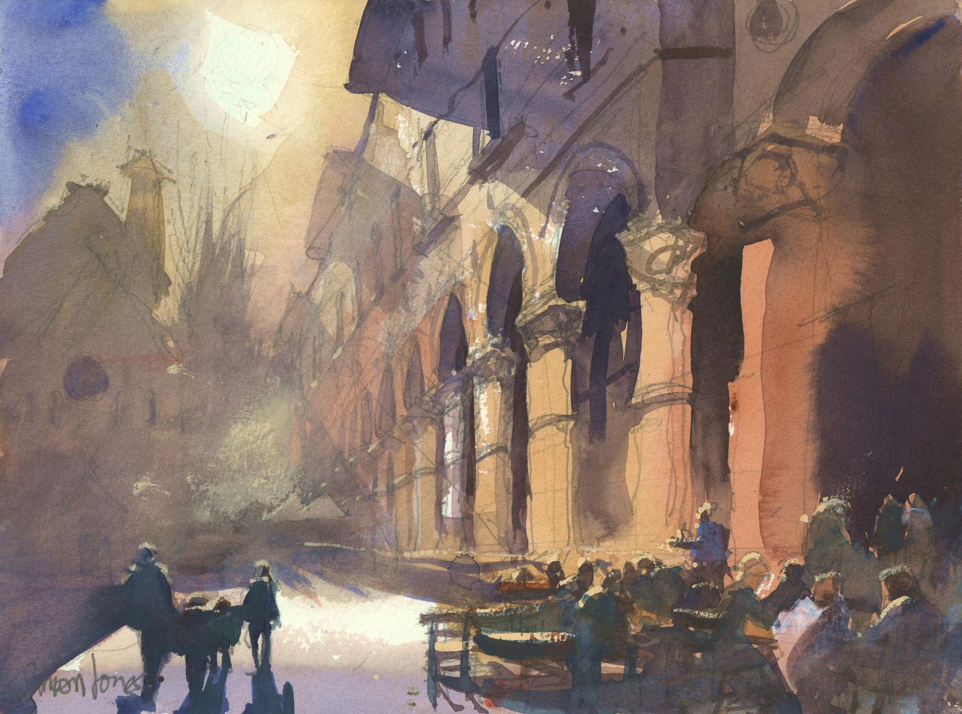 Simon Jones combines a background in architecture (BA, AADipl) with that of a landscape painter. He has exhibited in The Waterman, New Academy and Mall Galleries London; architecturally he has worked in offices in London and Sydney.